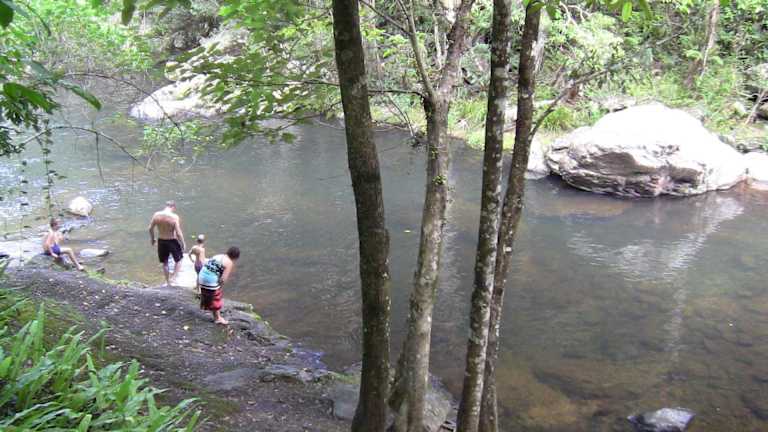 Ein Geheimtip in Cairns. Man faehrt auf der 91 bis Redlynch und biegt dort links in die Redlynch Connection Road ein. Hier faehrt man immer geradeaus, bis es nicht mehr weiter geht. Es gibt einen Parkplatz und auch ein Eismann suchte hier seine Kunden. Nun geht es zu Fuuß immer am Fluß entlang, der immer wilder wurde, aber auch verschiedene Badebecken bildete, die auch genutzt wurden. Am Ende gab es einen hohen Wasserfall. Das Ganze ist noch kostenlos.