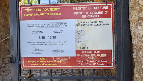 Oberhalb des modernen Korinth befindet sich die Ausgrabung der antiken Stadt, die aufgrund ihrer Lage zwischen zwei Häfen im Golf von Korinth und im Saronischen Golf einst eine der bedeutendsten Städte Griechenlands war. Heute zeugen nur noch einige wenige Überreste von der einstigen Pracht der Stadt. Neben dem Eingang zur Ausgrabungsstätte befinden sich die spärlichen Überreste von Theater und Odeon. Die wichtigsten und am besten erhaltenen Gebäude sind die noch sechs stehenden Säulen des Apollo-Tempel, der Marktplatz mit seinen Verkaufsräumen, der gut erhaltene Brunnen von Peirene sowie die mit Marmor gepflasterte Lechaion Straße, welche Alt-Korinth mit dem Hafen am Golf von Korinth verband. Das kleine Museum innerhalb der Ausgrabungsstätte ist einen Besuch wert, hier sind sehr schöne Mosaike und Statuen zu sehen. Leider kann man viele der in den Reiseführern und auch auf den Tafeln vor Ort beschriebenen Gebäude nicht betreten bzw. nicht nahe heran, so dass man sich zum Beispiel von den Marktschänken, den Badeanlagen und öffentlichen Toiletten überhaupt kein Bild machen kann, weil alles weitläufig abgesperrt ist. Auch auf den Brunnen von Peirene, der wirklich noch sehr gut erhalten ist, kann man nur von weitem (und kleine Leute am besten noch auf Zehenspitzen) einen Blick werfen. Es ist sicherlich nachvollziehbar, dass die antiken Stätten geschützt werden müssen, rechtfertigt damit jedoch nicht den geforderten Eintrittspreis. Unseren Erwartungen, die wir nach den Beschreibungen in den Reiseführern an Korinth hatten, wurde leider nicht in vollem Maße entsprochen, da wir noch dazu eine mehrstündige Anfahrt in Kauf genommen haben. Für alle, welche in der Nähe ihren Urlaub verbringen, ist es jedoch sicherlich schon einen Ausflug wert.