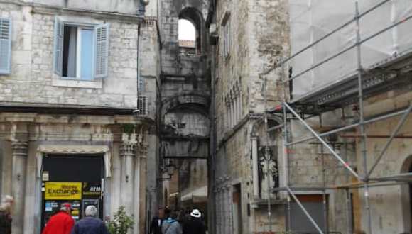 Das einfachste der vier Palasttore ist das, durch welches von der römischen Zeit über das Mittelalter bis in die heutigen Tage das ganz normale Leben Einlass fand. Das Eiserne Tor ist die Verbindung zwischen dem Diokletianpalast und dem später erbauten Teil der Altstadt, der nicht zum Palast gehörte. Im elften Jahrhundert wurde über diesem Tor die Kirche der Mutter Gottes des Glockenturms gebaut. Die Glocken der Renaissance-Uhr grüßen bis heute die Stadt und ihre Einwohner.