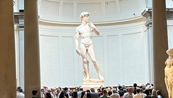 Wer kennt ihn nicht? David von Michelangelo kann man in Florenz nicht übersehen, es sei denn, die Menschenmassen verdecken ihn. Einen Blick auf ihn werfen kann man im Vorbeigehen, oder man bleibt zum näheren Betrachten stehen. Wie dem auch sei, eine Livebetrachtung lohnt sich alle mal.