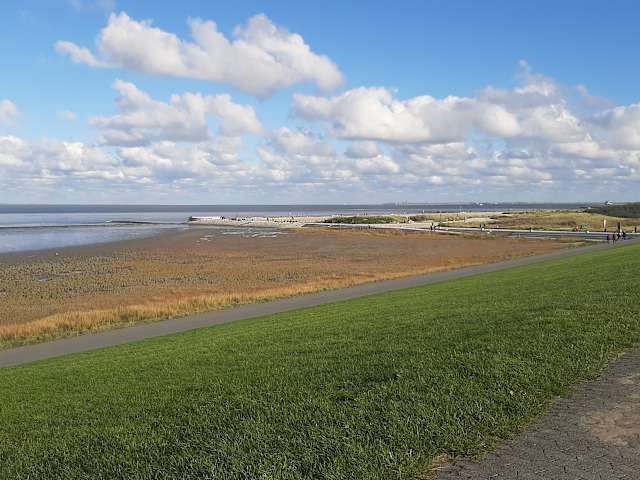 Idealer Spazierweg um sowohl den Strand und das Wattenmeer auf der einen wie auch Norddeich auf der anderen Seite des Deichs im Blick zu haben.