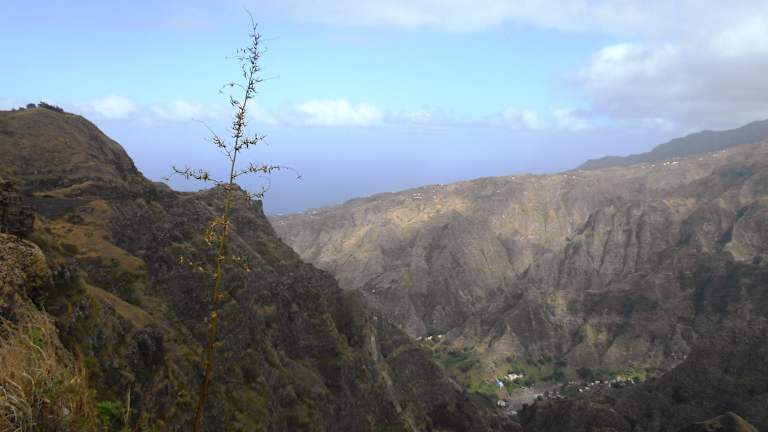 Zwischen Porto Novo im Süden und Ribeira Grande im Norden von Santo Antão führt eine mit Basaltsteinen gepflasterte Straße, die Rua de Corda, quer über die Insel. Die Straße schlängelt sich durch einige der schönsten Täler und entlang steiler Hänge zu den vulkanischen Kämmen der Insel an. An ihrem höchsten Punkt führt die Straße über den schmalen Kamm des Delgadinho-Bergrückens. Von hier hat man einen atemberaubenden Ausblick auf hoch aufragende grüne Gipfel und erloschene Krater, in denen jetzt Landwirtschaft betrieben wird.