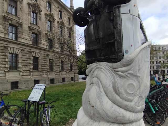 Am Karlsplatz (Stachus) , direkt vor dem Justizgebäude befindet sich das Denkmal der „Autoeater“ ( der Autoesser). Der Karlsplatz, der von den Münchnern auch Stachus genannt wird, ist einer der bekanntesten Plätze der bayerischen Hauptstadt. Einst soll der Karlsplatz der verkehrsreichste Platz Europas gewesen sein - heute ist er zumindest einer der wichtigsten Verkehrsknotenpunkte in München. Der „Autoeater“ wurde vom Bildhauerpaar Julia Venske und Gregor Spänle geschaffen. Julia Venske (* 1971) und Gregor Spänle (* 1969) leben und arbeiten in München und New York. Sie stellen ihre Skulpturen in allen Kontinenten der Welt aus. Der Autoeater ist ein 4,20 Meter hoher Schlund aus weißem Marmor, der einen Fiat Panda verschluckt. Nur noch das Vorderteil schaut heraus. Neun Monate haben die beiden Künstler am autofressenden Marmor gearbeitet. 16 Tonnen bringt der Schlund samt Auto auf die Waage. Der Marmor stammt aus Carrara. Bevor die Skulptur nach München kam, stand das Kunstwerk laut eines Berichtes im Internet von 2017 – 2021 in Atlanta, Georgia. Nach Aussage der Künstlerin soll das Denkmal das Ende einer Ära versinnbildlichen und für eine autofreie Stadt werben. Vor dem Kunstwerk wird auf einer Hinweistafel das Denkmal „Autoleater“ beschrieben. Die Stadt München hat diese Aktion finanziert. Da steht der Autoeater am Stachus gerade richtig. Ob sich die vorbei brausenden Autofahrer von der Skulptur „Autoeater“ nachdenklich machen lassen, ist nach meiner Ansicht fraglich?