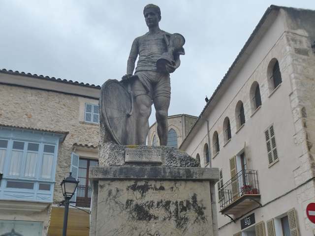 An der südwestliche Ecke vom Plaça es Fossar, dem Marktplatz von Sineu, befindet das Denkmal für Francesc Alomar. Dieses Denkmal befindet sich vor dem Haus Plaça es Fossar 13, dort, wo der Weg hoch zur Iglesia Santa Maria de Sineu (Sineu Mare de Deu dels Angels) geht. Francesc Alomar (geboren 23.Dez.1928 auf Mallorca in Sineu, gestorben 9.Aug.1955 auf dem spanischen Festland in Ourense) war ein spanischer Radrennfahrer (von 1952 bis 1955 war er Profi). Er gewann diverse Rennen, 1954 belegt er bei der Tour de France den 31. Platz. Im Alter 26 Jahren verstarb er am 9. August 1955 er infolge eines Unfalls bei Trainingsfahrt. Das Denkmal zeigt Francesc Alomar mit dem Fahrrad in der rechten Hand und einem Pokal in der linken Hand. Wenn man vom Marktplatz zur Kirche geht, so kommt man nahezu unwillkürlich an diesem Denkmal vorbei und man kann es sich dabei anschauen