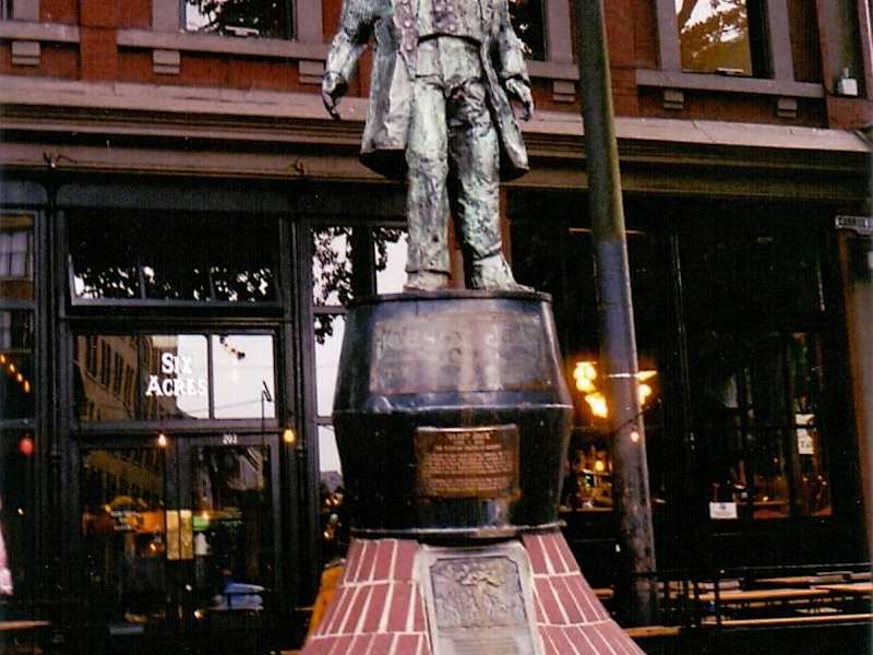 Die im Jahr 1970 errichtete Bronzestatue des "Gassy Jack", offizieller Name John Deighton, befindet sich am Maple Tree Square von Gastown unter einem großen Ahornbaum. An dieser Stelle soll Deighton im Jahr 1867 die Bar "Globe Saloon" für die hier tätigen Holzfäller eröffnet haben, um die sich anschließend eine kleine Siedlung -das heutige Vancouver- bildete.