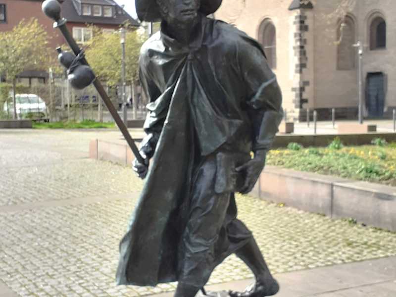 Die Statue des Jakobus erinnert an die Tradition der Stadt Neuss als eines der bedeutendsten mittelalterlichen Pilgerzentren am Niederrhein. Verehrt wurde hier vor allem der Heilige Quirinus, Schutzpatron der Kranken (v. a. Pest und Blattern) und der Pferde, dem auch die Kirche geweiht ist, vor der das Denkmal steht.