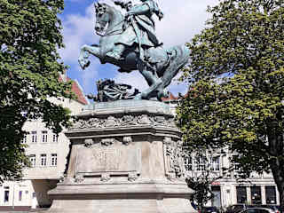 Das Denkmal auf dem Holzmarkt zeigt den polnischen König Jana III. Sobieski, der im 17. Jahrhundert als hervorragender Feldherr galt und sich großer Beliebtheit bei seinen Untertanen erfreute.