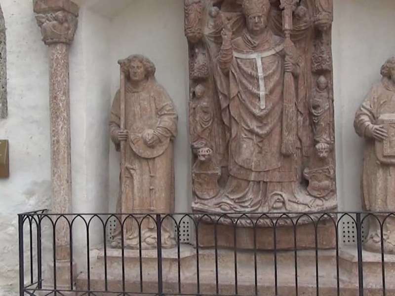 Fürsterzbischof Leonhard von Keutschach (1496–1519) war einer der den Festungsbau maßgeblich beeinflusste. An Ende seiner Amtszeit wurde ihm deshalb ein Denkmal gesetzt. An der Fassade der Georgskirche erschuf der berühmten Bildhauer Hans Valkenauer 1515 ein einzigartiges Kunstwerk. Die drei großen und zwei kleinen Marmorstatuen zeigen mittig den Fürsterzbischof begleitet von zwei Diakonen.