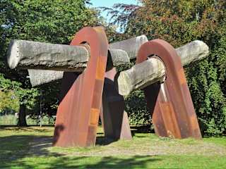 Das "Revolutionsdenkmal WIK" steht im Ratsdienergarten in der Altstadt von Kiel. Es erinnert an den Kieler Matrosenaufstand, der im November 1918 den Auftakt zur Beendigung des Ersten Weltkriegs bildete. Das Denkmal wurde zum 60. Jahrestag des Matrosenaufstands von dem Hannoveraner Bildhauer Hans-Jürgen Breuste aus Corten-Stahl und Granit geschaffen und am 16. Juni 1982 eingeweiht. Es besteht aus drei 6 Meter hohen, schräg stehenden Stahlträgern, die im oberen Bereich jeweils rechtwinklig von einer Granitsäule durchdrungen werden. Inspiriert wurde Breuste durch das im Jahr 1930 veröffentlichte Schauspiel "Feuer aus den Kesseln" des Schriftstellers Ernst Toller. Homepage: https://www.kiel.de/de/kultur_freizeit/kiel_erkunden/kulturspuren/KulturSpuren_Matrosenaufstand/denkmal_wik.php Adresse Jensendamm 7 24103 Kiel Deutschland