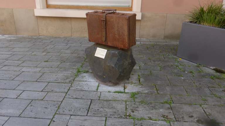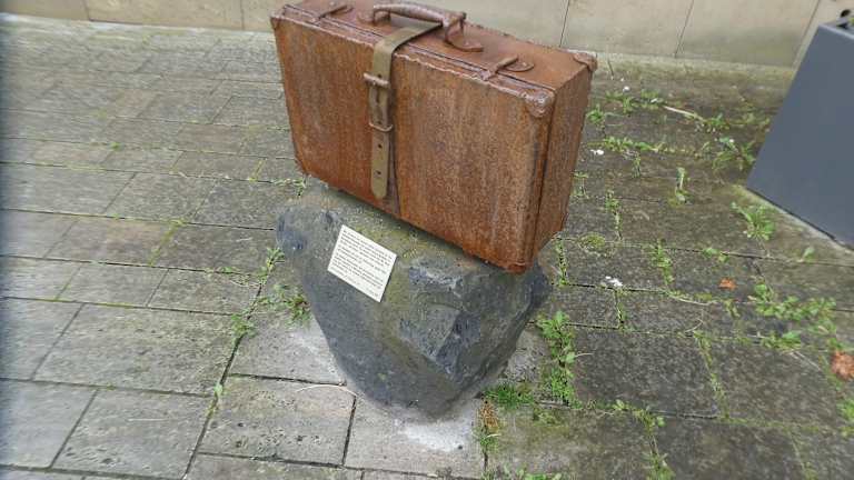 Von dem zentralen Denkmal „DenkOrt Deportationen 1941-1944“ vor dem Würzburger Hauptbahnhof gibt es diverse dezentrale Ableger. So steht in Gerolzhofen in der Marktstraße die Nachbildung eines Koffers als Gegenstück des Koffers aus dem zentralen Denkmal in Würzburg. Auch der Koffer in Gerolzhofen steht zum Gedenken an die jüdischen Mitbürger_innen, welche zwischen 1941 und 1944 durch Deportationen in die Konzentrationslager und Vernichtungslager der NAZIs verschleppt und ermordet wurden.