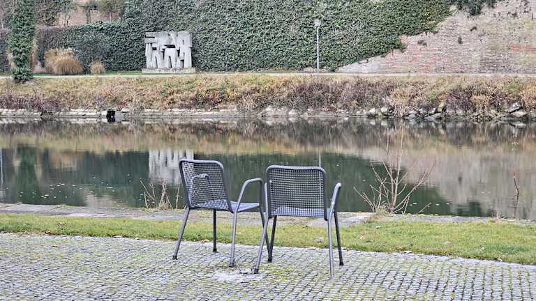 Nach Jahren hatte ich wieder die Glegenheit auf den Schwal zu gehen. Es ist immer noch ein Park und liegt auf der Insel zwischen der großen und der kleinen Donau. Mittlerweile sind zu den Bänken im Park unter den Bäumen noch fünf Zweierkombinationen von Metallstühlen beim Kriegerdenkmal am Rand hinzu gekommen. Sie sind massiv am Boden befestigt. Das ist auch notwenig, da sie sonst sehr bald in der Donau landen würden.