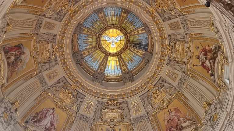 Der Berliner Dom ist eine evangelische Kirche im Lustgarten auf der Museumsinsel.Es ist eine sehr schöne Kirche mit einem Kuppeldach.Von außen gibt es eine Plattform.Diese kann man durch mehrere Treppenstufen erreichen. Er ist jedoch nicht kostenlos zugänglich.