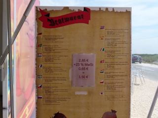 Wer zum Cabo de San Vincente fährt, sollte natürlich auch die letzte Bratwurst vor Amerika aufsuchen und eine frisch gegrillte Bratwurst zu sich nehmen. Als wir es besuchten, ging ein sehr frischer Wind und uns schmeckte die heiße Wurst köstlich. Sie schmeckte wie zuhause. Es gibt sie als Fränkische oder als Thüringer Rostbratwurst und zusätzlich bekommt man von der freundlichen Verkäuferin als Beweis dass man dort war, ein Certivicado.