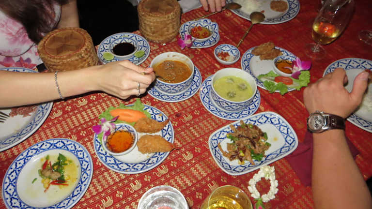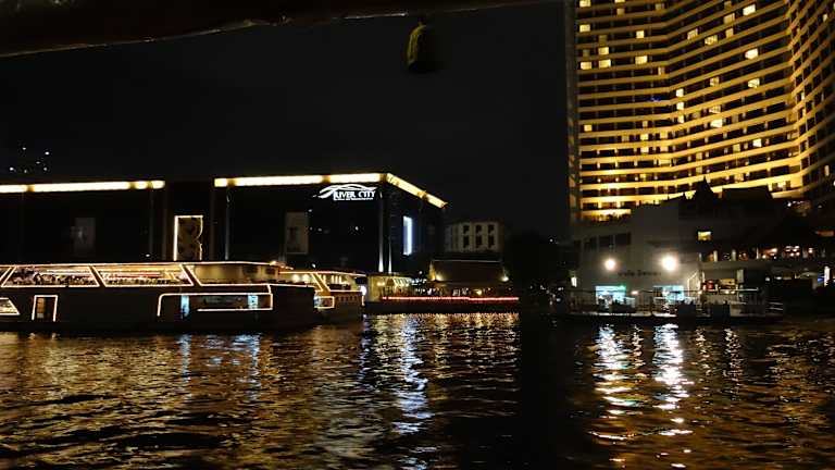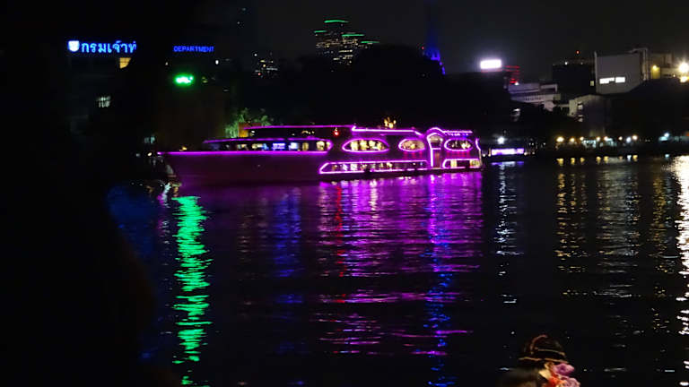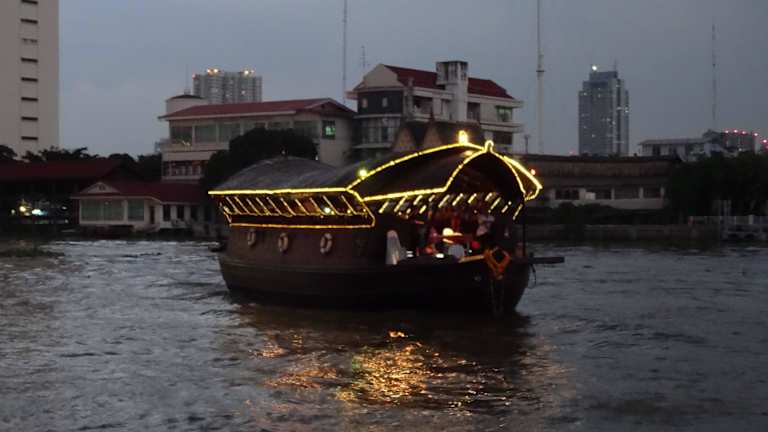 Diese Dinner Cruise ist viel privater als die großen Partyboote mit Standard Buffet und lauter Partymusik. Außerdem hat man einen eigenen Tisch und muss diesen nicht mit anderen Leuten teilen. Das Boot fährt in der Dämmerung bei langsamer Fahrt den Chao Praya hoch und wieder runter und bietet so unzählige Fotomotive, die dann schön beleuchtet sind. Am besten vorher per Internet bestellen, hier gibt es bis zu -20% Rabatt.