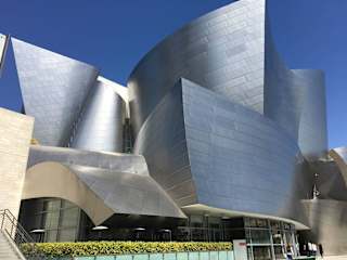 Die nach dem Filmproduzenten Walt Disney benannte "Walt Disney Concert Hall (WDCH)" befindet sich auf dem Hügel Bunker Hill an der Ecke Grand Avenue und First Street in der Innenstadt von Los Angeles. Sie ist einer von vier Veranstaltungsgebäuden des Los Angeles Music Center, einem der größten Zentren der darstellenden Künste in den Vereinigten Staaten. Die nach Plänen des Architekten und Designers Frank Gehry erbaute und am 23. Oktober 2003 eröffnete Walt Disney Concert Hall zählt wegen ihrer modernen Akustik und Architektur zu den bedeutendsten Konzerthallen der Welt. Das Gebäude aus Edelstahl hat die Form eines großen Segelschiffes mit gebogenen und gewellten Umrissen. Der Baukomplex beherbergt neben dem Konzertsaal, der Platz für 2.265 Besucher bietet, weite Foyers und zahlreiche Nebenräume für Veranstaltungen und private Versammlungen. Auf dem Dach des Gebäudes wurde eine Gartenanlage mit einem rosafarbenen Brunnen aus Royal Delft-Porzellan geschaffen. In dem Gebäude sind das Los Angeles Philharmonic Orchestra und der Chor Los Angeles Master Chorale beheimatet. Homepage: https://www.laphil.com/