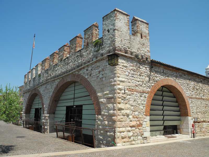 Bei diesem Gebäude handelte es sich um ein Arsenal, gebaut von den Scalingern im 14.Jh. Im Laufe der langen Zeit haben die Venezier es als Zollgebäude benutzt al sie hier die Hohheit hatten. Dann wurde es auch als Schafsunterkunft benutzt, sowie auch zur Herstellug von Schwarzpulver für die ersten Feuerwaffen. Heute werden darin Veranstaltungen der Gemeinde abgehalten, wir konnten auch eine Spezialmesse sehen. Hier wurden elektronische Sicherungsartikel angeboten die für die Hotels und Ferienhäuser gedacht sind. Die Touristen haben natürlich für solch ein gebäude kein Interesse, sie haben anderes im Sinn.