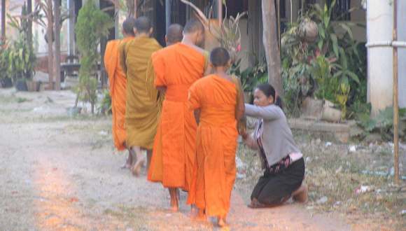 Don Khong ist eine Mekong Insel im Gebiet der4000 Inseln.Früh aufstehen und den Sonnenaufgang mitzuerleben ist eines der nachhaltigsten Erlebnisse. Kurz nach dem Sonnenaufgang beginnen die Mönche ihre Gang,die Familien waschen sich gemeinsam mit den Wasserbüffeln im Mekong und die Frauen gehen zum Markt.