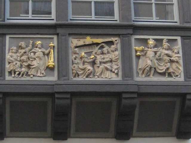 Ein schönes altes Haus, aber… zum Dreikönigenhaus sind leider kaum Informationen zu finden. Auf der Infotafel vor Ort ist zu lesen, dass das Haus 1701 auf Veranlassung des Ratsherrn Johann Wilhelm von Hauschild erbaut wurde und es das Geburtshaus des Mainzer Erzbischofs Emmerich Josef Freiherr von Breitbach-Bürresheim war. Der Freiherr lebte von 1707 – 1774. Aus dieser Zeit sollen die drei Reliefs oben am Erker stammen. Sie zeigen die Hl. Drei Könige, die ihre Gaben überbringen. Zum wahrscheinlichen Ursprung des Namens "Dreikönigenhaus": In der einzigen dazu gefundenen Quelle ist zu lesen, dass der Name auf 1538 zurückgeht. Zu der Zeit soll es dort einen Garten gegeben haben, der den Namen „Heilige-Drei-König-Altarsgarten" trug. 1595 soll dann dort ein Haus gestanden haben, das später der „Gasthof zu den Drei Königen“ wurde. Wahrscheinlich wurde dieses Haus noch später zerstört und an dessen Stelle eben 1701 das Haus des o. g. Ratsherren gebaut. (Angaben ohne Gewähr. / Quelle: wikipedia.org) Im Zweiten Weltkrieg (1944) wurde das Gebäude wie viele andere schöne alte Häuser in Koblenz schwer beschädigt und 1976/77 wieder instand gesetzt. Heute ist u. a. das Restaurant „Soul Food“ in dem Gebäude zu finden - Kornpfortstraße 15.