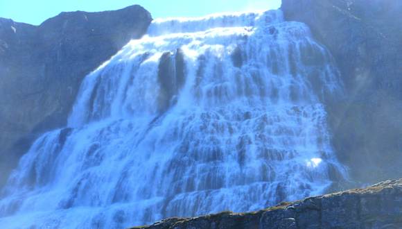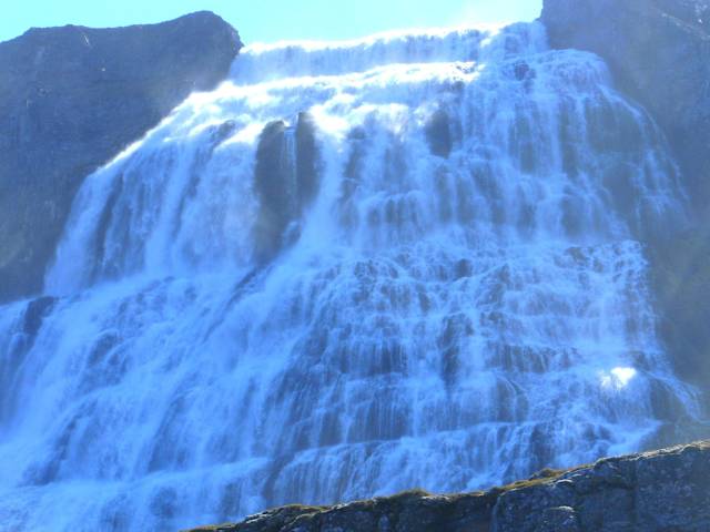 Der Dynjandi ist für mich der schönste Wasserfall Islands, wenn nicht sogar einer der schönsten überhaupt. Der Anblick der breitgefächerten, etwa 100m hohen Kaskade aus Wasser ist wunderschön und einzigartig. Man sollte sich nicht von der etwas umständlichen, langwierigen Anreise abhalten lassen. Die abgeschiedene Lage in den fast menschenleeren isländischen Westfjorden bietet den großen Vorteil, dass man den Dynjandi oft ganz für sich alleine hat, im Gegensatz zu seinen weitaus bekannteren Artgenossen wie z.B. dem Gullfoss oder dem Dettifoss. Von Isafjördur aus kommend kann man den Wasserfall schon kilometerweit entfernt erkennen. Während des einfach zu bewältigenden Aufstiegs an den Fuß des Dynjandi passiert man zudem noch zahlreiche, weitere kleine Wasserfälle. Außerdem bietet sich von hier oben bei schönem Wetter ein wunderbarer Blick auf den Dynjandisvogur.