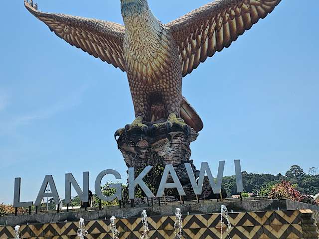 Der Adler ist das Wahrzeichen der Insel Langkawi und auch in dem Namen enthalten. Die gigantische Skulptur steht in Kuah, der kleinen Hauptstadt, unweit vom Jetty Point. Es ist besonders nett sie von der Seeseite zu sehen. An diesem Eagle Square angrenzend ist ein kleiner Park der ganz nett fuer einen kleinen Spaziergang ist. Im hinteren Teil ist der Jetty Point mit ein paar Laeden und Resurants. Wenn Du schon dort bist, kannst Du auch die paar Meter zum Yacht Club die Strasse hoch gehen. Der Club ist oeffentlich und betreibt ein Restaurant, "Charlie's Place". Es ist nett zu jeder Tageszeit, aber besonders zum Sonnenuntergang und zur Happy Hour. Herrlicher Blick ueber den Yachthafen. Eva