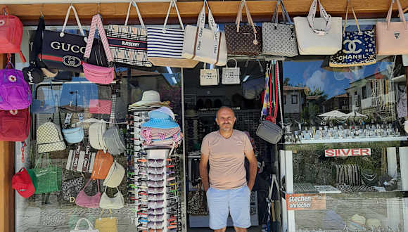 In Mitten der Altstadt von Side in einer Nebenstraße liegt das Geschäft Goldschmied Korkmaz. Er verkauft Gold-Silber und Edelstahlschmuck und Armbanduhren. Änderungen werden wenn möglich sofort erledigt. Neu im Angebot sind Sonnenbrillen, Taschen und Rucksäcke sowie Hüte und Tücher.
