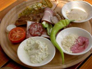 Schon bei Betreten des Grundstückes trifft man geordnete Verhältnisse an. Mit viel Liebe zum Detail ist ein einladendes Gasthäuschen mit Stil entstanden. Die Speisekarte ist vielseitig bunt: von Jause über Vorspeise und Hauptgericht zu verschiedenen Kuchen - oder alles einzeln. Saisonbedingte Produkte werden in spezieller schmackhafter Weise zubereitet gereicht. Jeder geübte oder ungeübte Gaumen kann eingehende Besonderheiten in Herstellung und Anordnung entdecken. Ich selbst bin Ripperlfan, wobei die Originalität in der Zutatenkombination der gefüllten Nudeln gipfelt: ich esse beide Gerichte nirgends besser. Die einzigartigen Variationen kann man/frau in der gemütlichen Stube oder auf der Terrasse jeweils mit Blick bis auf die Karawanken genießen.
