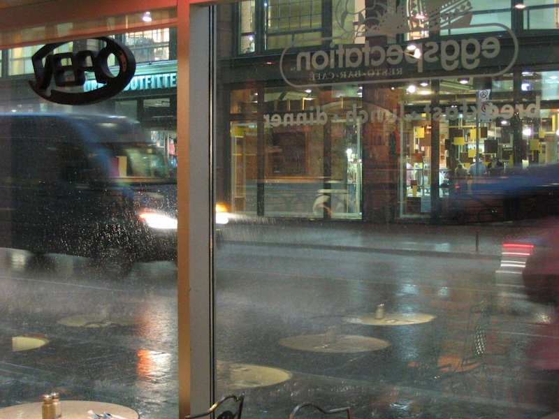 Das Lokal ist ganztags geöffnet und es dreht sich (fast) alles ums Ei, wie der Name schon sagt. Besonders toll ist die Frühstücksauswahl. Es gibt eine Riesenauswahl an Kombinationen (Eier, Omelettes, Waffeln, Crepes, French Toast,...), man kann sich aber auch alles selbst kombinieren und zusammenstellen. Der kleine Obstsalat um 5 Dollar ist so eine Riesenportion, dass wir sie zu zweit kaum geschafft haben. Auch die übrigen Portionen sind gewaltig. Preise sehr günstig. Eine Kombination aus 2 Eiern, Kartoffeln, Würstchen, Pfannkuchen mit Sirup, Fruchtgarnitur kostet ca 8-9 Dollar. Im Hotel hat ein vergleichbares Frühstück in weniger nettem Rahmen an die 12 Dollar gekostet. Adresse: Toronto Eaton Centre 220 Yonge Street (corner Shutter) Toronto, Ontario M5B - 2H1 Tel.:(416) 977-3380
