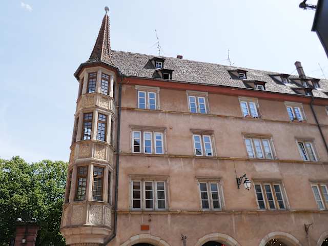 Dieses mächtige Wohnhaus in der Nähe der Kirche St Mathieu wurde von der Stadt erbaut,damit ein evangelischer Pfarrer dort seine Wohnung hatte. Erbaut wurde das Haus von 1606 bis 1608. Im Erdgeschoß waren Geschäfte mit Arkaden und im Obergeschoss war die Wohnung und das Presbytherium des Pfarrers. Sehr augenfällig sind die beiden Eck-Erker an den ganzen Etagen.