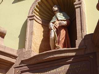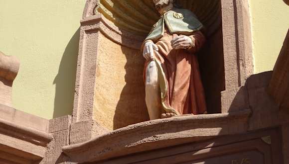 Ursprünglich befand sich hier ein Gebäude,, welches als bischöflicher Pferdestall Marstall) genutzt wurde. im 18. Jahrhundert errichtete laut Infotafel der Schultheiß Günther ein Waisenhaus, welches wohl bis in die 1930er betrieben wurde. Am Seitenportal findet man eine Figur des Pestheiligen Rochus. Vor dem Gebäude ist ein Brunnen, welcher bei unserem Besuch sehr schön als Osterbrunnen geschmückt gewesen ist.