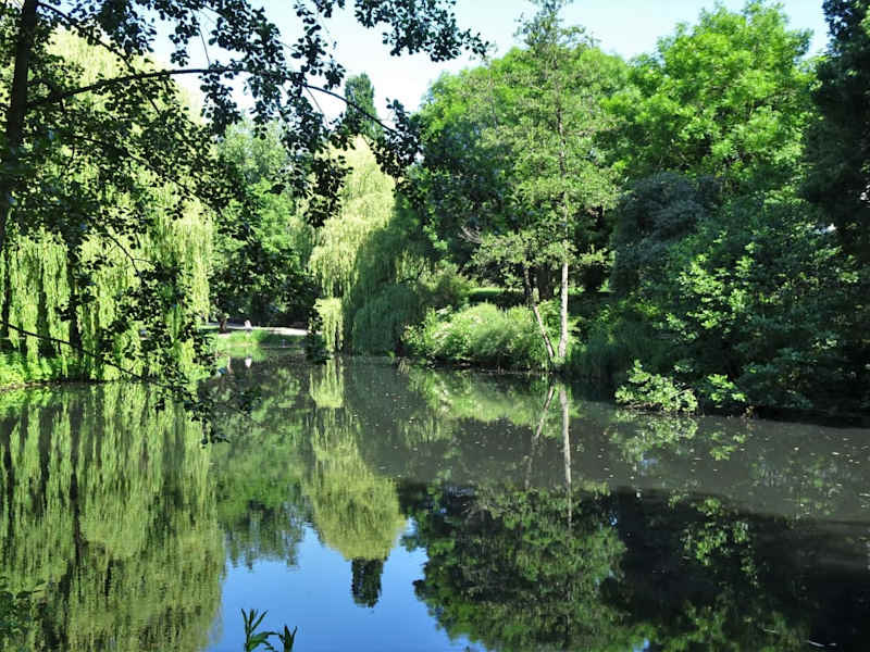 Der "Eimsbütteler Park Am Weiher", wie er mit vollem Namen heißt, befindet sich im Herzen des gleichnamigen Hamburger Stadtteils. Der etwa 2,27 Hektar große Landschaftspark wurde in der ersten Hälfte des 19. Jahrhunderts im Auftrag des Senators und späteren Bürgermeisters Ascan Wilhelm Lutteroth angelegt. Dabei wurden die zu Fischteichen aufgestaute Ottersbek und der vorhandene alte Eichenbestand integriert. Highlights sind der alte Baumbestand, der Teich, der Spielplatz, das Planschbecken sowie das Café. Der Park wird durch einen Spazierweg mit vielen Bänken erschlossen. Homepage: https://www.hamburg.de/politik-und-verwaltung/behoerden/bukea/themen/hamburgs-gruen/parkanlagen/eimsbuetteler-park-275170 Adresse: Ottersbekallee 20255 Hamburg Deutschland