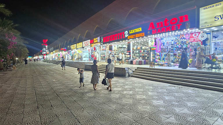 Gegenüber dem Hotel ist Bazar Cleopatra, fixe preise und nur 20-30 % von anderen Geschäfte. 1 Km entfernt Senso-Mall fixe Preise, alles billig.