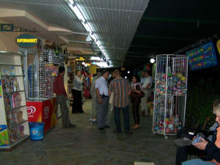 Im Hotel gibt es eine kleine Einkaufsstrasse, die in der Zeit von 10. 00h bis 24. 00h geöffnet hat. Es befinden sich hier diverse Geschäfte, wie Supermarkt, Ledergeschäft, Koffer und Taschen sowie einen kleinen Juwelier und ein Schuhgeschäft. Da es sich um Hotelräume handelt, sind alle Geschäfte miteinander verbunden. Die Preise entsprechen den Preisen, die auch zum Teil in Alanya gezahlt werden. Wir waren am Ende der Saison vor Ort und hatten die Möglichkeit kräftig zu handeln, hatten im Bekleidungsgeschäft aber auch das Problem, dass nicht mehr alle Größen (vornehmlich die großen Größen) vorhanden waren. Trotzdem wurden wir freundlich und zuvorkommend behandelt. Importgetränke sind auch hier teuer. Coca Cola (im Hotel nur Pepsi all in) kostet der Liter 1, 50 €. Importierte Akoholika sind sehr teuer. Im Juweliergeschäft wird hauptsächlich mit Uhren und Silberschmuck gehandelt. Einen guten Juwelier gibt es im Nebenhotel oder in Side. Das Koffer- und Taschen geschäft hatte moderne Ware von verschiedenen Herstellern. Auch die Kofferpreise waren, bei besserer Qualität, in diesem Shop günstiger als in Alanya. Im Ledergeschäft wurden diverse Sonderangebote ausgeschrieben und diese waren auch dann noch verhandelbar. Am besten war das Schuhgeschäft. Hier wurden Preise aufgerufen, die man in Alanya nicht bekommen hat. Prada-Schuhe(wenn auch nachgemacht) für 23, 00 €. Alle Größen alle Farben. Auch Gürtel waren hier sehr günstig. Ledergürtel (in Deutschland im Ledergeschäft testen lassen) mit Schnellverschluß (made in Germany) für 15, 00 €. Alle sprachen sehr gutes deutsch. Wenn man abends nur klönen wollte, setzte man sich dazu und wurde mit Getränken versorgt. Es war alles ungezwungen. zumal man sich jeden Abend sah.