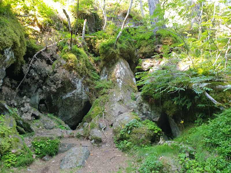 In den Eislöchern (L:100mxB:20mxH:5m) Auf 500 Höhenmetern finden Sie eine Vegetation und Klima von 1800 Höhenmetern. Auch im Hochsommer ist es nicht heißer als 18 C° Vom Gasthof Steinegger in 30 Gehminuten erreichbar. Unbedingt einen Pullover mitnehmen. Lagebeschreibung: In Eppan / Berg 30 Gehminuten vom Gasthof Steinegger entfernt Wanderweg Nr. 7 A.