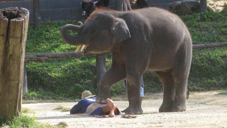 Es ist ein einmaliges Erlebnis, einen Elefanten zu waschen! Auch kann man an der Elefantenshow teilnehmen. Die Elefanten können auch Bilder malen.
