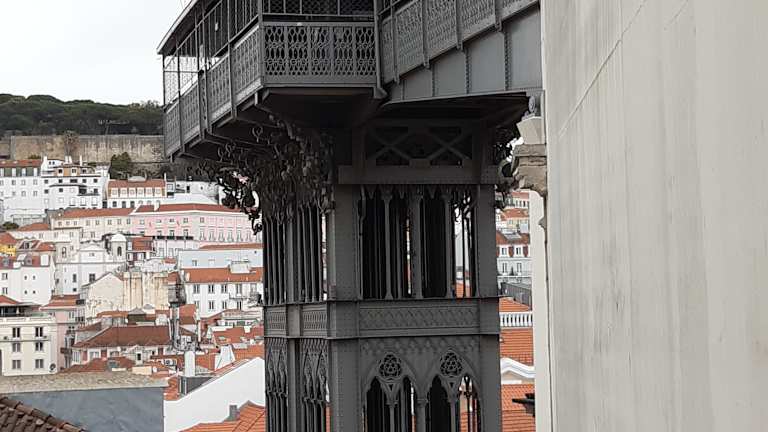 Der Elevador de Santa Justa ist eine imposante Stahlkonstruktion, mittels derer der Stadtteil Baixa mit dem höher gelegenen Stadtteil Chiado verbunden wird. Angelegt im Jahre 1902 und nach Renovierungsarbeiten 2005 wiedereröffnet, transportieren zwei Kabinen bis zu 24 Personen pro Fahrt.