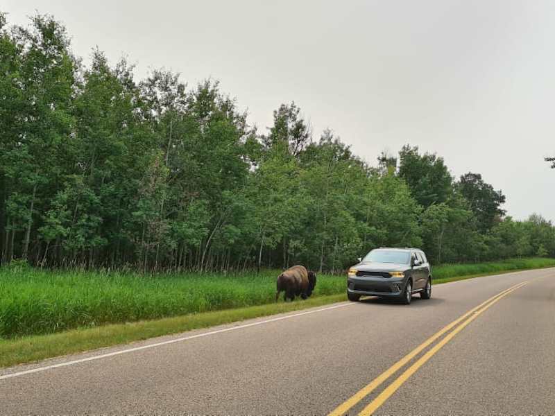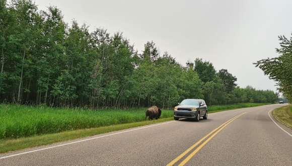 Weniger als eine Stunde (45 km) östlich von Edmonton liegt der kleine 194 km² große eingezäunte Elk Island National Park direkt beidseitig des Yellowhead Highway (No. 16). Er wurde 1906 auf den Beaver Hills (Biber-Hügeln), ursprünglich von den Sarcee- und Cree-Indianern bewohnt, als geschütztes Gebiet gegründet und 1930 zum Nationalpark erklärt. Es gibt einen allgemein zugänglichen Teil nördlich desHighway und einen Teil südlich davon, der offensichtlich nur mit Führern begehbar ist. Dieser Park schützt einen Teil des Aspen Parklands, das einst den gesamten nördlichen Saum der Prärie bildete. Dieser Nationalpark soll zu den besten Gegenden Albertas für Tierbeobachtungen in freier Natur zählen: Prärie- und Waldbisons, Wapitis(Elks), Elche (Mooses), Weißedel- und Maultierhirsche, Kojoten, Biber,Bisamratten, Nerze und Stachelschweine sowie aufgrund der vielen Seen und Tümpel ca. 250 Vogelarten. Die offizielle Homepage des Elk Island National Park ist (http://www.pc.gc.ca/eng/pn-np/ab/elkisland/index.aspx).