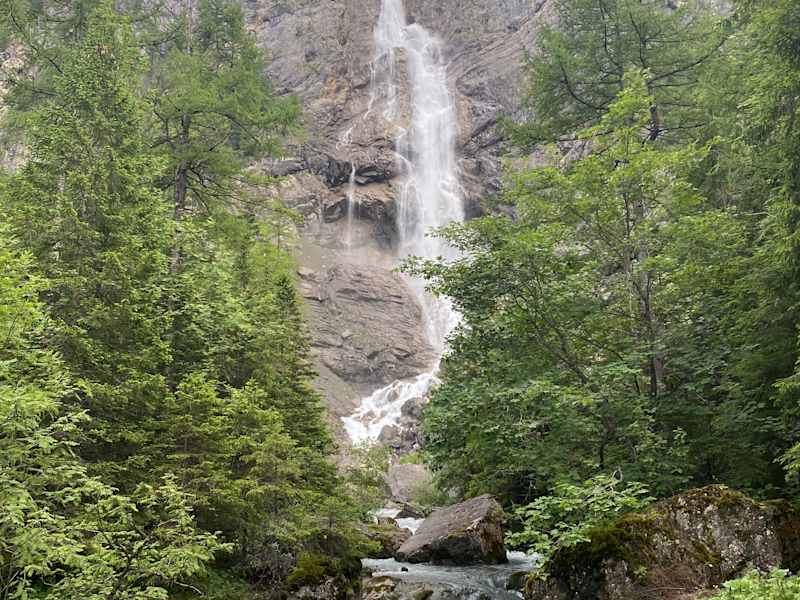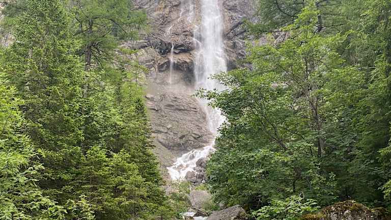 Vom Hotel einfach zum Wasserfall wandern, teilweise schön am Bach entlang. Mit der Bahn oder zu Fuss auf die Alp