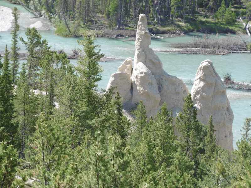 Die unnatürlich aussehenden "Hoodoos" sind Felsformationen, die in Jahrtausenden auf natürliche Weise durch Erosion von Wasser und Wind entstanden sind. Hoodoo ist ein afrikanischer Begriff, der mit Hexerei zu tun hat. Wenn das außen liegende weiche Gestein wegerodiert ist, verbleibt ein harter Kern oder ein weicher Kern mit einer schützenden harten Abdeckung, die Hoodoos. Sie verändern ihre Form durch Erosion auch weiterhin. Der etwa fünf Kilometer lange Hoodoo Trail im Banff National Park verläuft, beginnend an der Tunnel-Mountain-Straße, parallel zu den Ufern des Bow River. Er überwindet einen Höhenunterschied von etwa hundert Metern.