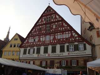 Jedes Jahr im August gibt es das Zwiebelfest in Esslingen auf dem Marktplatz. In diesem Jahr hatte man die Zeit vom 7.8. bis 17.8. 2015 ausgewählt. Jetzt schon im 29. Jahr wird es beschickt von einer Gruppe lokaler Gastwirte. Im Gegensatz zu den Weinfesten anderer Weingegenden, will dieses Fest mit Gerichten aufwarten, die vom "normalen" Speiseangebot abweichen. So sollen es nicht nur Rote Bratwürste, Fleischkäse und ähnliches geben, hier kann man auch spezielle Zubereitungen verkosten , die nicht alltäglich sind. Natürlich müssen die Wirte auch in den so genannten Lauben in der Lage sein, solche Gerichte zubereiten zu können. Das Angebot an Weinen und Bieren umfasst ausschliesslich regionale Erzeugnisse. Das Fest endet des Abends recht spät, montags bis freitags um 23°° Uhr und am Sa. und So. um 24°° Uhr. Was wir sehen konnten, die Zelte sind auch spät abends immer gut besucht.