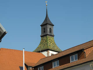 Bei dieser Kirche handelt es sich um eines der ersten Gebäude der Stadt, welche man heute in Korb findet. Die Kirche geht auf das Jahr 1482 zurück. Sie erlebte in diesen frühen Jahren zwei große Unglücke. 1596 brannte der Glockenturm durch einen Blitzschlag und am 21. April 1707 wurde er wieder durch ein Unwetter beschädigt. Aber heute macht er äusserlich einen sehr guten Eindruck, denn schön ist der Turm durch seine farbigen Schindeln.