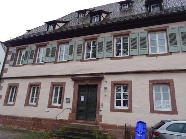 Laut Infotafel wurden beim Bau des Pfarrhauses im 18. Jahrhundert Teile aus dem ehemaligen Südturm der Klosterkirche wiederverwendet. Schönes, aber eher schlichteres Gebäude.