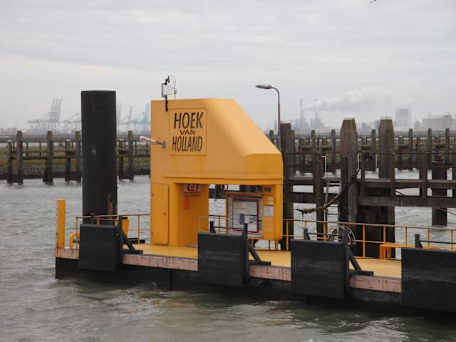 Vom Bahnsteig Hoek van Holland, Haven, sind nur etwa 50 Meter zu Fuß zum Anleger der Fast Ferry zurückzulegen. Abfahrt und Ankunft von Zug und Fähre sind auf einander abgestimmt. Die Schnellfähre fährt das ganze Jahr hindurch. Natürlich muss man nicht die gesamte Rundfahrt in einem Rutsch mitmachen - man kann auch unterwegs aussteigen, einen Spaziergang machen und die Fahrt mit einer späteren Fähre fortsetzen. Im Sommer bietet sich eine Kombination Fähre und Fahrradtour durch das Gelände des Europoort an. Selbst direkt an Industrie-Terminals finden sich ausgeschilderte Fahrradwege. Fahrräder können auf dem Außendeck festgezurrt werden. Die eigentliche Tour mit der Fähre ist atemberaubend: Die Fähre heißt nicht nur Fast Ferry, sie ist wirklich schnell bei der Rundfahrt durch die äußeren Containerhäfen, über eine der neuen Hafeninseln (Maasvlakte 2) und zwei weitere Haltepunkte. Wer nicht im warmen Innenbereich sitzen möchte, sondern unbedingt an der Reling stehen will, sollte sich gut festhalten, nicht nur bei Wellengang.