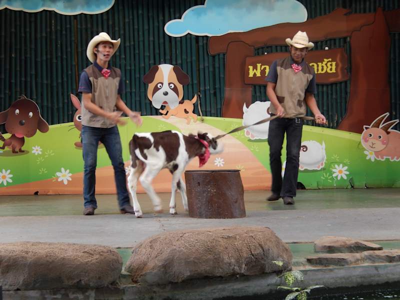 Farm Office 159-160 Moo 2 Friendship Highway, Pakchong, Thailand Tel 0 4493 5628-30, 0 4432 8386 and 0 4432 8395 Jeder hat sicher während seiner Schulzeit in Deutschland eine Molkerei oder Bauernhof besichtigt. Die Chokchai Farm beinhaltet beides zusammen und noch ein bisschen mehr. Führungen gibt es alle 20 Min, auf Wunsch auch in English. Vorher haben wir im Steakhouse der Farm gesättigt, hier kann man ein Rindersteak frisch oder abgehangen von der Chokchai Farm genießen. Nach einem kurzen Film über die Geschichte der Farm, geht es mit weiter mit dem Rundgang in der Molkerei. Danach eine Tour rund um die Farm mit Traktor-Bahn. Die Farm ist ziemlich groß, die Besichtigung umfasst auch die Felder, sowie wie den schön gelegene Campingplatz der Farm. Ein stopp an der Pferdekoppel, hier gibt es verschiedene Attraktionen und Imbisse, des weiteren Ein ATV Cours (mit Quads durch das Gelände), Pferdereiten und eine Cowboy Show uvm. Der nächste Haltepunkt war der Streichelzoo hier kann man u.a. Fische mit der Milchflasche säugen, zum Abschluss gab es eine lustige, tolle Tiershow. Mit kleineren Kinder kann man auf der Chokchai Farm sicher einen schönen Tag verbringen und auch Erwachsene kommen nicht zu kurz. Leute die Action wollen oder kein Interesse an der Landwirtschaft haben sind sicher fehl am Platz. Eintritt 2014 : Erwachsene 300 Bath, Kinder bis 1,40 cm 150 Bath Öffnungszeiten: Dienstag – Freitag: Feste Zeiten sind 10:00 und 14:00 bei Bedarf bis 15:40 Uhr alle 20 Minuten Samstag – Sonntag und an Feiertagen: 09:00-11:40 und 01:00-15:40, alle 20 Minuten. Montag geschlossen, außer es ein gesetzlicher Feiertag. Die Chokchai Farm ist ungefähr 160 km von Bangkok entfernt und in Richtung Norden vor Nakhon Ratchasima je nach Verkehrslage in ca. 2 ½ Std. zu erreichen. Bauernhof Chokchai war ursprünglich nur ein Landwirtschaftlicher-Betrieb. In den letzten 10 Jahren hat die Farm Chokchai viele Menschen in Thailand bewegt die landwirtschaftliche Innovation in Thailand voran zu treiben. Dieser Erfolg ist offensichtlich, die Anzahl von 300.000 Besuchern jedes Jahr, sowie die Anerkennung aus der Industrie, Gesellschaft und die unzähligen Anfragen von verschiedenen Organisationen bestätigen dieses.