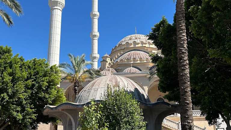 Die beiden Minarette sind schon von weitem zu erkennen, aber leider war eine Besichtigung im März 2018 nur von außen möglich, weil offenbar Renovierungsarbeiten stattfanden.