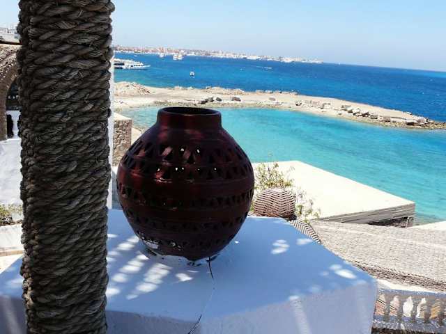 Gutes Essen mit noch besserer Aussicht, einfach schön. Wer ein bischen probierfreudig ist wird sich dort wohl fühlen, weil teils ägyptische, teils internationale Küche. Aber man sollte ein wenig englisch können, weil die Karte auf englisch ist, oder einfach mutig nicken wenn der Kellner die Bestellung aufnimmt. Die Fischgerichte sind sehr zu empfehlen und man kann auch Shisha rauchen.