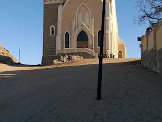 Die Felsenkirche wurde 1911 erbaut. Sie ist mit das größte Gebäude in Lüderitz und fällt durch ihre architektonischen Meriten auf. Wie bei der Christuskirche in Windhoek stiftete Wilhelm II auch hier die bunt bemalten Kirchenfenster, seine Frau die Altarbibel. Bes: Nach 17 Uhr