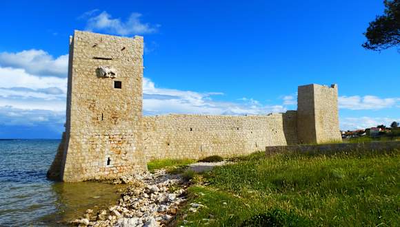 Die venezianische Festung Kaštelina liegt auf der Insel Vir nahe der kleinen Siedlung Kozjak. Das Kastell wurde im frühen 17. Jahrhundert zum Schutz vor den Türken errichtet. Teile des Komplexes sind bis heute erhalten und wurden in den Jahren 2001/2002 restauriert. An der Vorderseite der Befestigungsanlage sind die Wappen der venezianischen Familie des Generalgouverneurs von Dalmatien und an der nördlichen Seite ein beschädigter geflügelter Löwe, das Wahrzeichen der Republik Venedig, erkennbar.