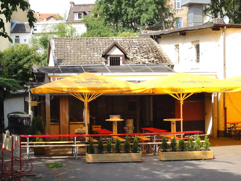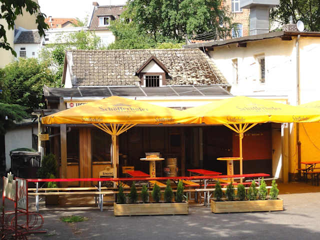 Die Rock-Kneipe „Fiasko“ liegt an der Schönfelder Straße im Kasseler Stadtteil Wehlheiden und lässt von außen kaum erahnen, dass sich hier nicht nur eine klasse Location für Live-Musik und echte Kneipenkultur samt Billardtischen, Kicker und „Bundesliga auf Videoleinwand“ verbirgt, sondern auch ein überaus schöner Biergarten hinter dem Haus. Das Motto des „Fiasko“ lautet: „Bei uns geht’s ums Schoppen zischen, ne grobbe Bratworscht essen, ma in Ruhe anner Theke drübber schwatzen können – aber vor allen Dingen um jede Menge Rock’n Roll“. Und seit inzwischen über 25 Jahren geht dieses Konzept auf! Die Speise- und Getränkekarte des Fiasko ist typisch „nordhessisch“ ausgerichtet und bietet neben zahlreichen lokalen Bierspezialitäten vom Fass und dem hessischen Apfelwein auch eine deftige Küche an – Schmand-Schnitzel, Hamburger (riesig!), Salate, hausgemachte Frikadellen, eben die grobe Bratwurst und Nudelgerichte werden nach der Bestellung zügig aus der Küche geliefert, während im Biergarten mit seinen 300 Sitzplätzen auch bei „durchwachsenem“ Wetter reger Betrieb herrscht. Ein Besuch des „Fiasko“ ist auf gar keinen Fall ein Reinfall, der Name gewollt irreführend und auch wenn Oberfrankens Biergartenkultur unerreichbarer Maßstab ist, kann die kleine Kneipe mit ihrer lauschigen Oase durchaus in der Königsklasse mitspielen.