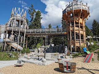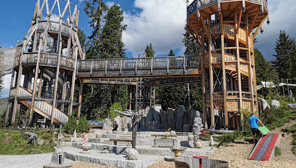 Ein tolles Highlight für die ganze Familie! Wir sind mit unseren Kindern 7 und 4 mit der Bahn hochgefahren, waren auf diesem tollen Spielplatz und sind dann zur Kreuzwiesenalm gewandert. Die Hälfte des Weges auf einem ausgetretenen Waldpfad was den Kindern super gefallen hat. Auf der Alm gabs leckeres Essen und sehr große Portionen. Danach sind wir unterhalb der Hütte auf dem Schotterweg runter zur Mittelstation gelaufen. Das war ein toller Tag!