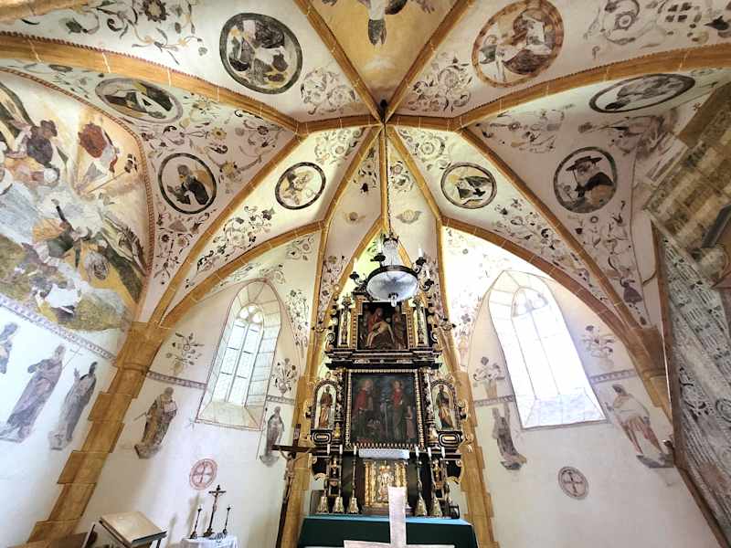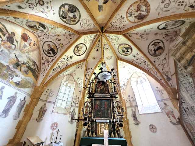 Wir hatten unser Auto unten geparkt und der Weg zur Wallfahrtskirche war anstrengend bei der hohen Temperatur, aber ich habe es geschafft..... Auf dem Hemmaberg knapp über 800 Meter hoch befindet sich diese Wallfahrtskirche. Erbaut wurde sie um 15. Jhdt, geweiht der Hl. Hemma und der Hl. Dorothea. sehenswert sind die 5 Altäre aus dem 17. Jhdt.. Durch die Restaurierung im 20. Jhdt. konnten zahlreiche Wandmalereien freigelegt werden. Diese Wallfahrtskirche ist wirklich was besonderes, hier verweilen und in sich gehen - und Ruhe tanken.